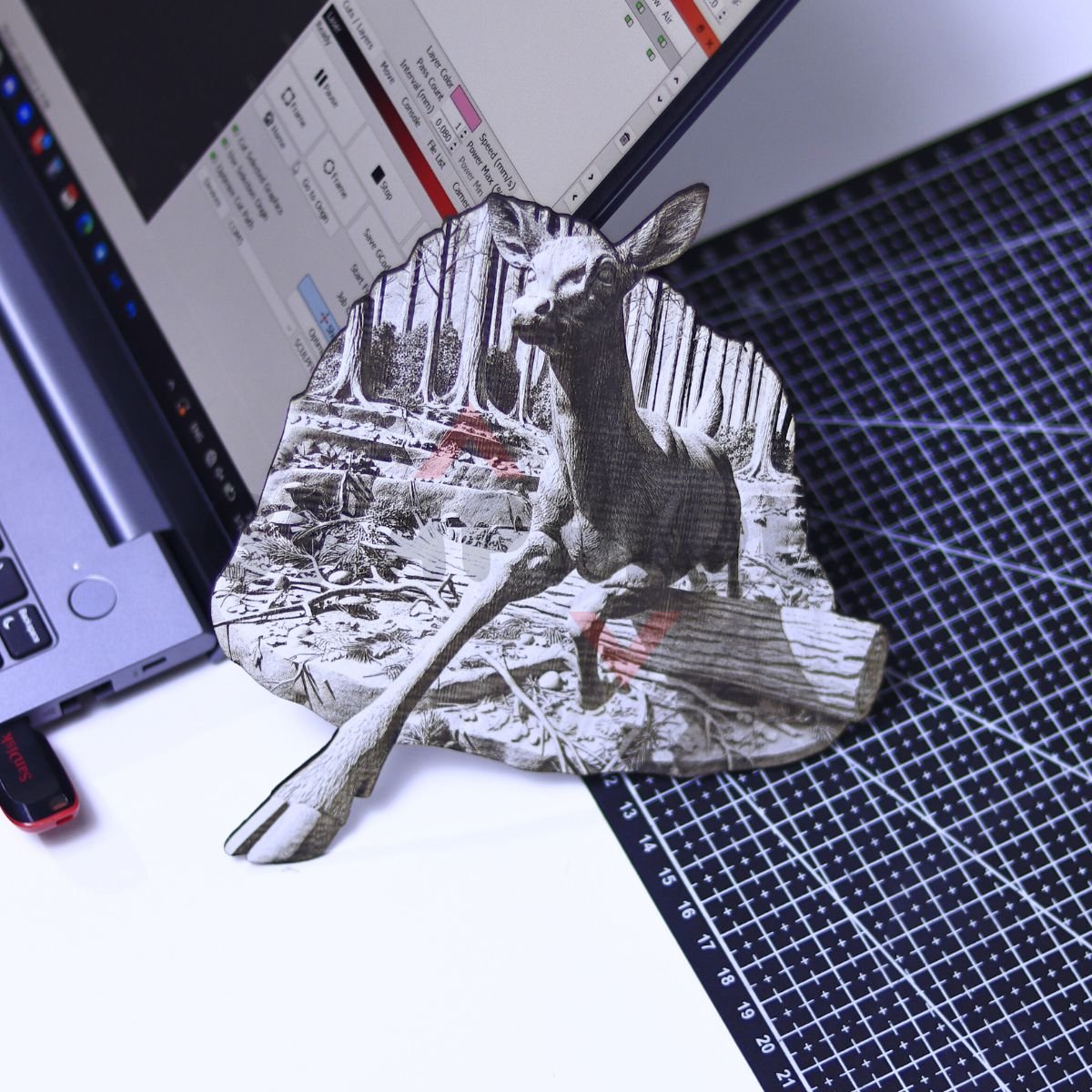 This design features a peaceful deer lying down in a detailed forest setting, with clean outlines and layered texture that engraves with strong readability. A great choice for rustic wall art, lodge/cabin decor, and nature-themed gift builds.