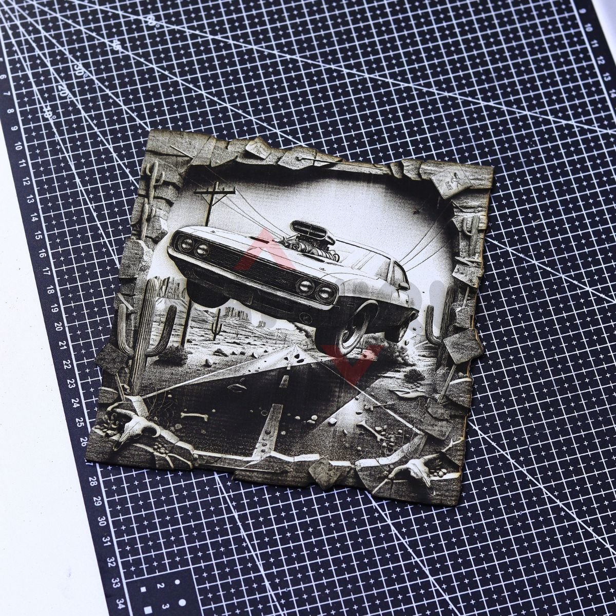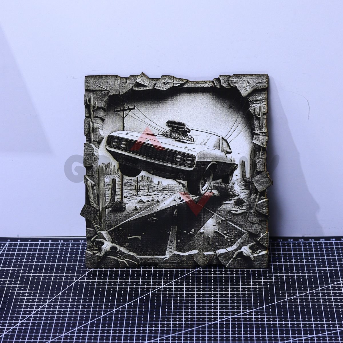 Desert Muscle Car Jump 3D Illusion Laser File – SVG, WWS, XCS, LBRN