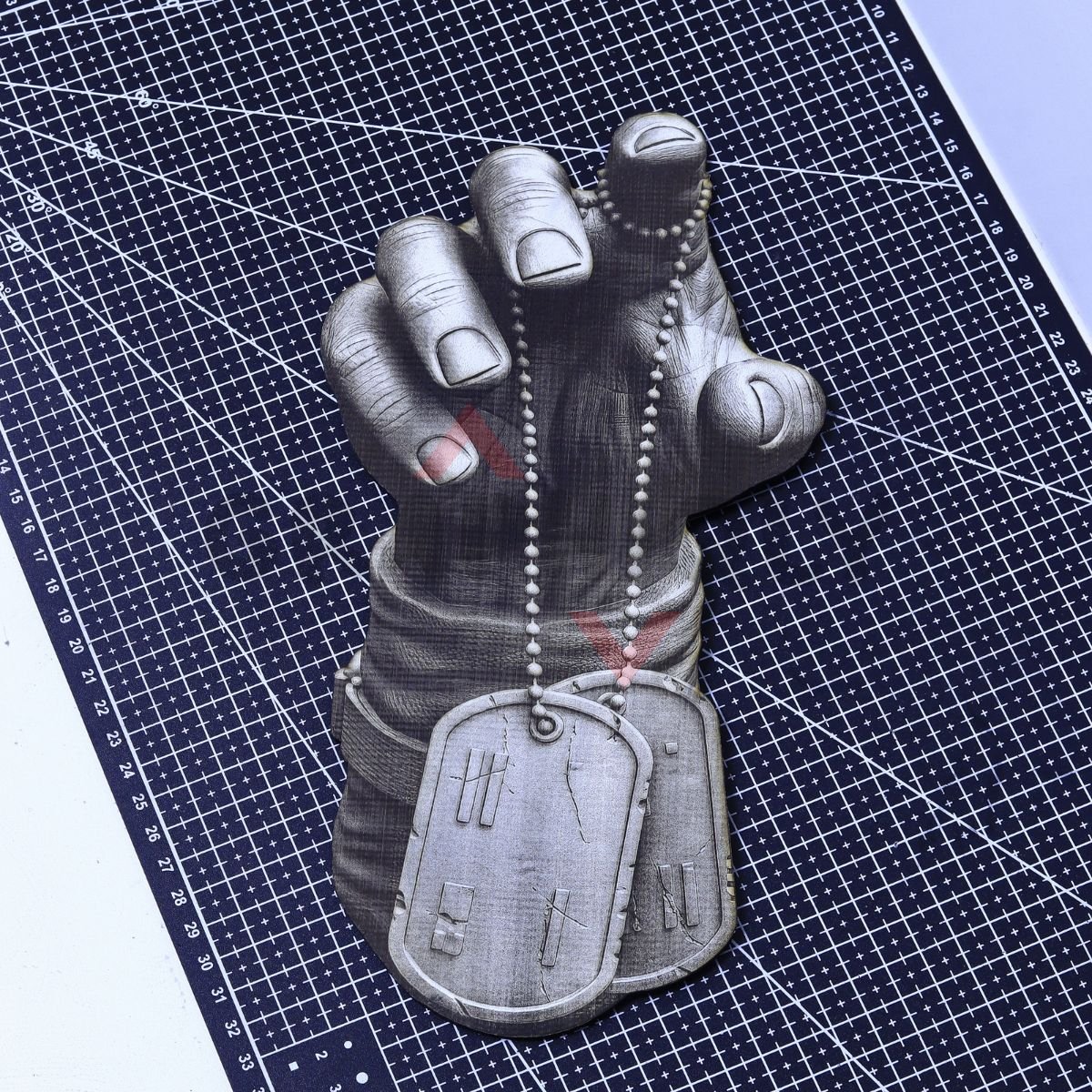Dog Tags in Hand is a military-themed tribute laser design with a close-up hand grip, chain links, and realistic dog tag detail. Ideal for memorial plaques, remembrance gifts, and respectful military builds where the tags are the center of attention.