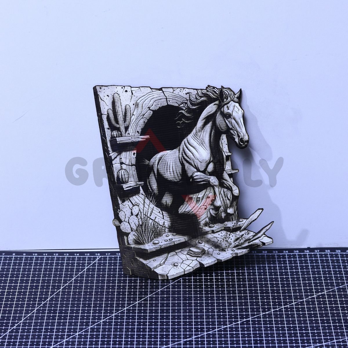Majestic horse emerging from an archway 3D illusion with stone/structure framing — perfect for western decor and horse-lover gifts. Includes SVG, LBRN2 (LightBurn), XCS (xTool), WWS (WeCreat), PNG, BMP.