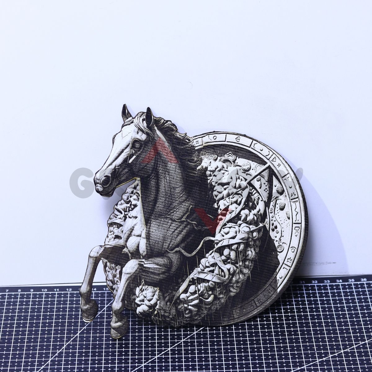 Epic rearing horse bursting through a portal 3D illusion — perfect for fantasy decor and standout horse wall art. Includes SVG, LBRN2 (LightBurn), XCS (xTool), WWS (WeCreat), PNG, BMP.