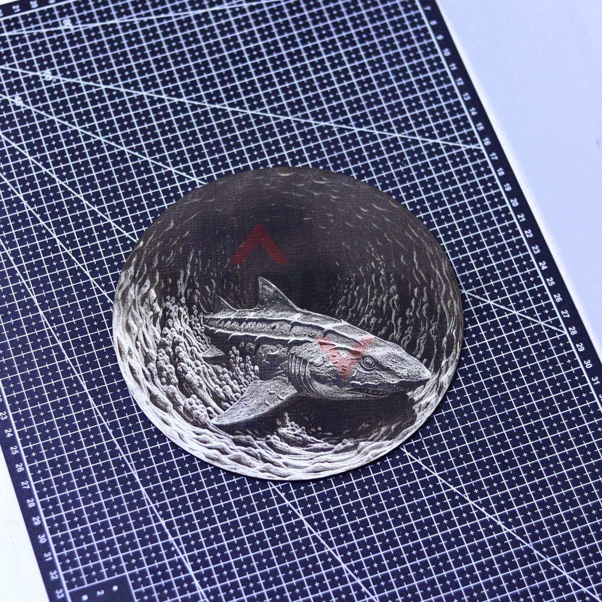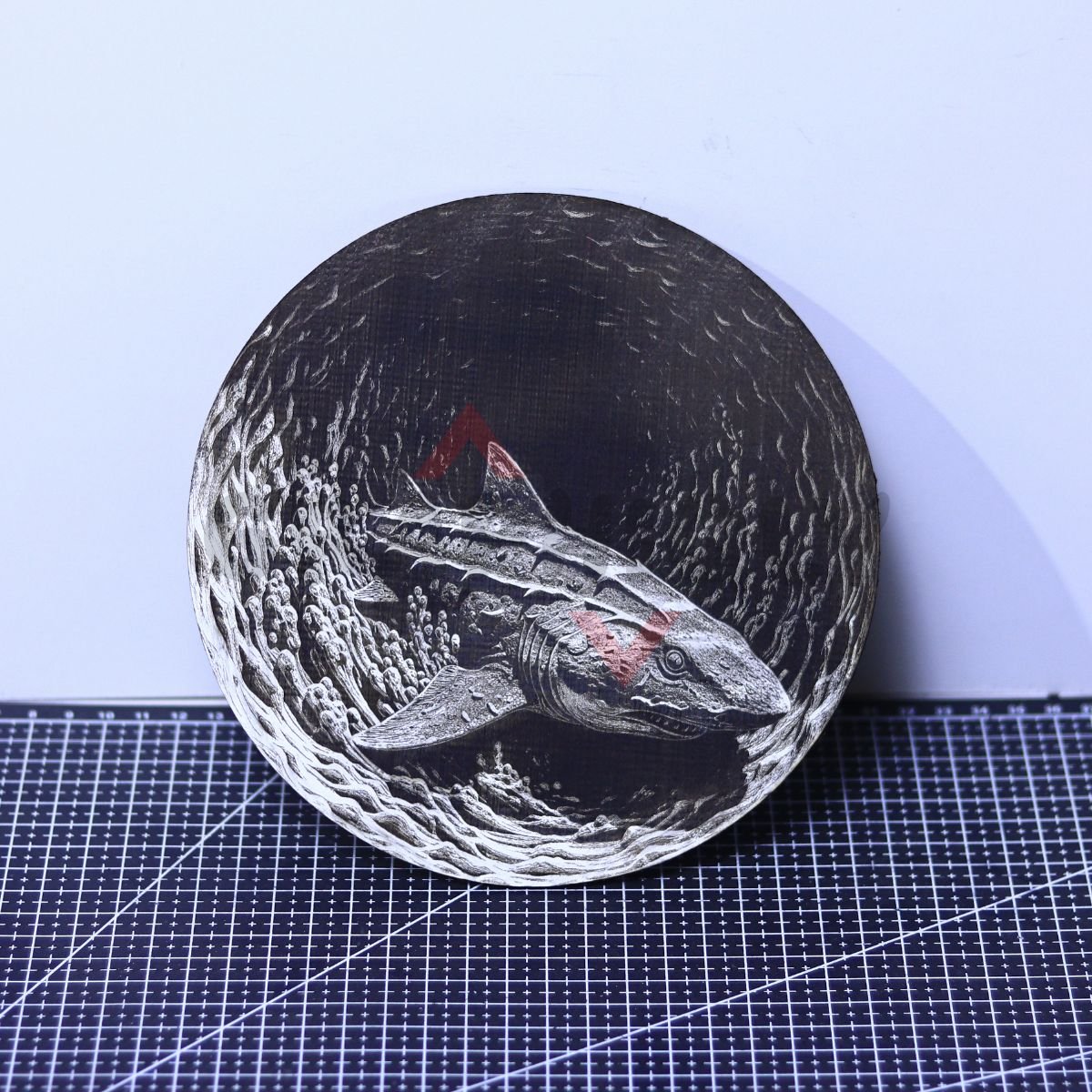 Dynamic shark swirling through an ocean vortex 3D illusion in a round scene — perfect for coastal decor and fishing gifts. Includes SVG, LBRN2 (LightBurn), XCS (xTool), WWS (WeCreat), PNG, BMP.