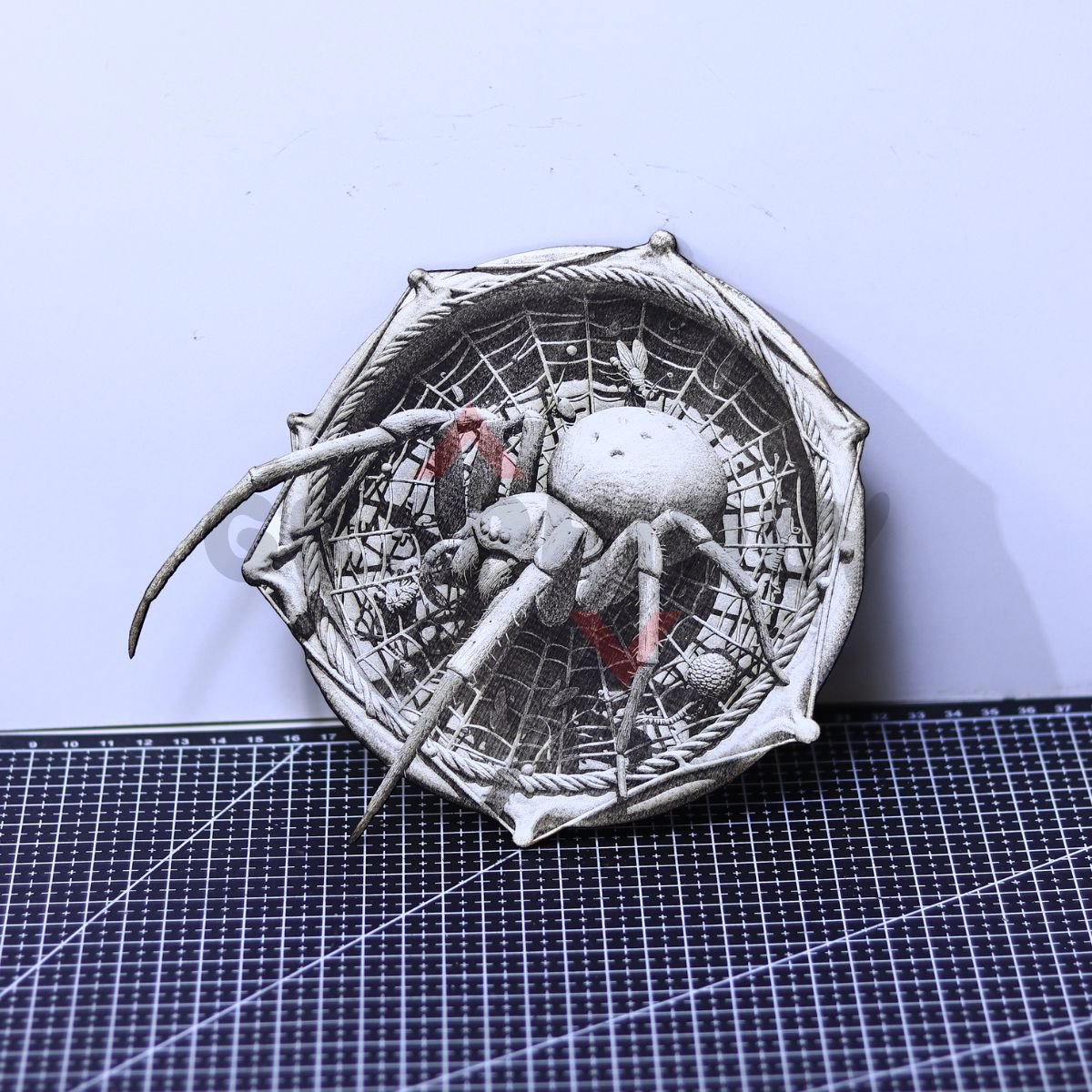 Creepy-cool spider web 3D illusion with a large spider centered in a circular web frame — great for Halloween and gothic decor builds. Includes SVG, LBRN2 (LightBurn), XCS (xTool), WWS (WeCreat), PNG, BMP.